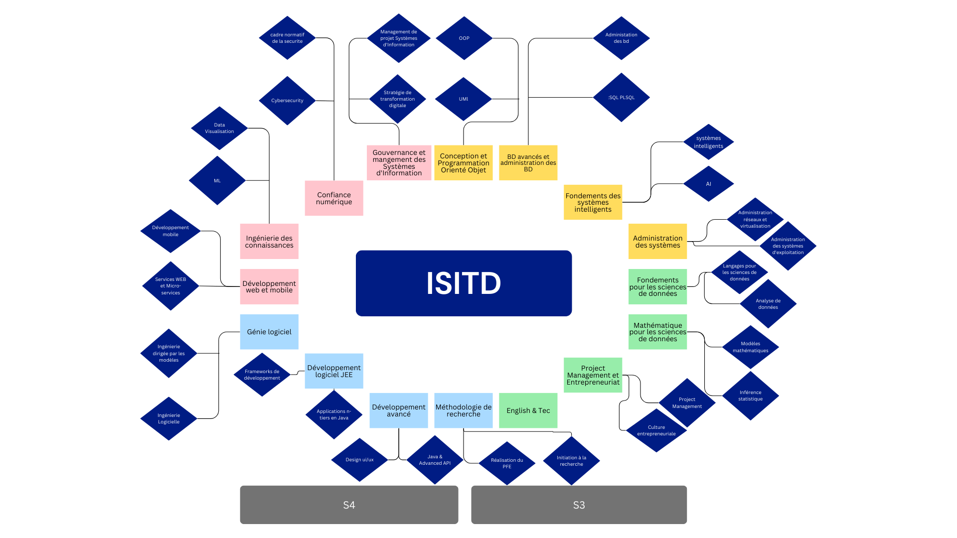 La filière ISITD se concentre sur la conception, le développement et la gestion des systèmes d'information. Les étudiants apprennent à concevoir des solutions informatiques efficaces pour répondre aux besoins des entreprises et des organisations. Cette filière couvre un large éventail de sujets, y compris les bases de données, le développement web, les technologies de l'information, et la gestion de projets informatiques.